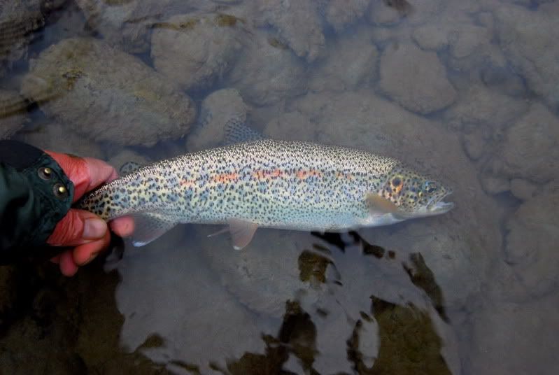 I loosened my hold on his tail and he slipped back into the current. I've fished for over 50 years and began going west of the Rocky Mountains in 1981 and so have seen many rainbow & cutthroat variants in the years since then. Here in Alaska I've been at it 15 seasons and the only trouts in the whole place are rainbow / steelhead trout with some cutthroat along the Southern coastal areas. They vary widely in size, markings and overall pigmentation based on the watershed they are in but that fella there, I've not met his match for overall looks.